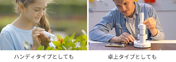 本体から鏡筒を取り外すと、手持ち式の小型顕微鏡として使用可能。
