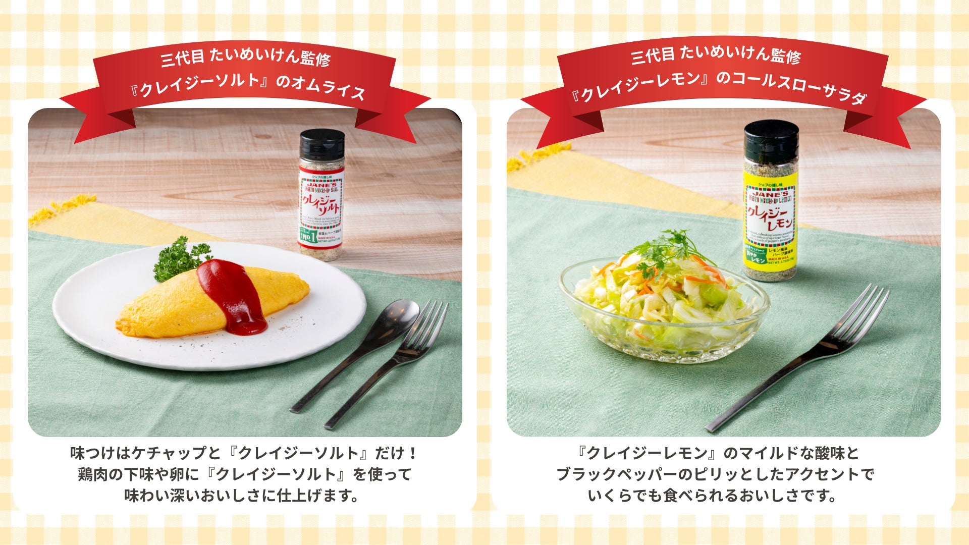■「三代目 たいめいけん」看板メニュー・オムライスと人気サイドメニュー・コールスローサラダを『クレイジーソルト』『クレイジーレモン』で調理!