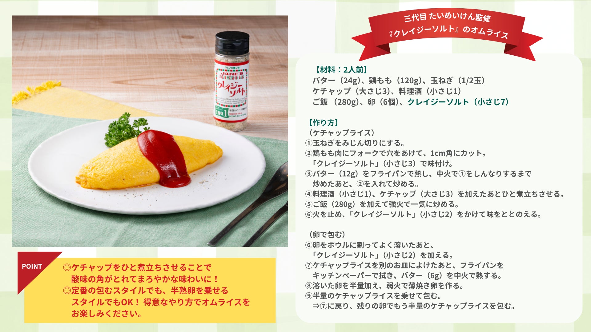 【コラボ】「三代目 たいめいけん」と「クレイジーソルト」が夢の共演! たいめいけんの人気メニューが自宅で簡単に作れる「オムライス」「コールスローサラダ」のコラボレシピを公開