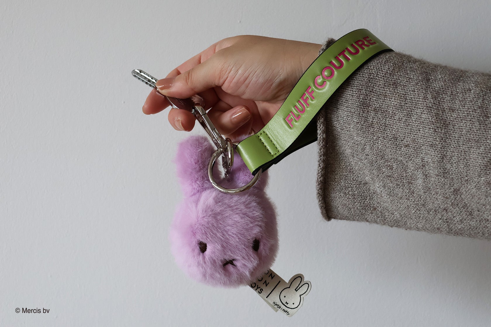 ふわふわと毛足の長い『Miffy Fuzzy』のシリーズに、バッグチャームが仲間入り。大きめサイズのミッフィーにフェイクレザーのストラップが付いた華やかなバッグチャームになっています。
