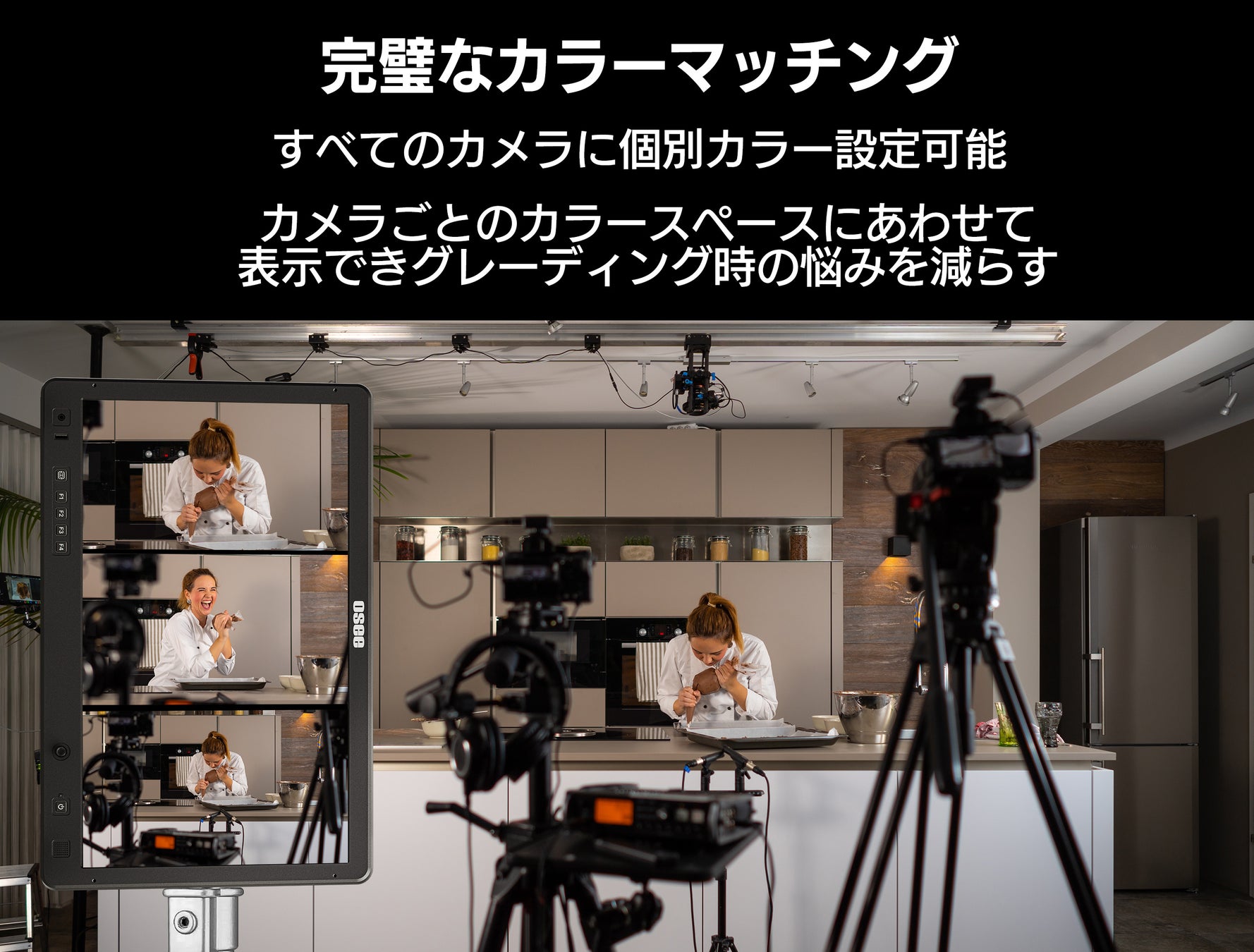 オーシーの製品は、映像クリエイターの創造性を最大限に引き出し、生産効率を向上させます。画質や操作性に妥協のないモニター、柔軟な運用を実現するスイッチャーは、常に現場の「もっと」を叶えるパートナーです。 映像制作クリエイターの皆様が、思い描く映像表現を制限なく実現する……そのための最良のツールとして、新たな可能性をお届けします。