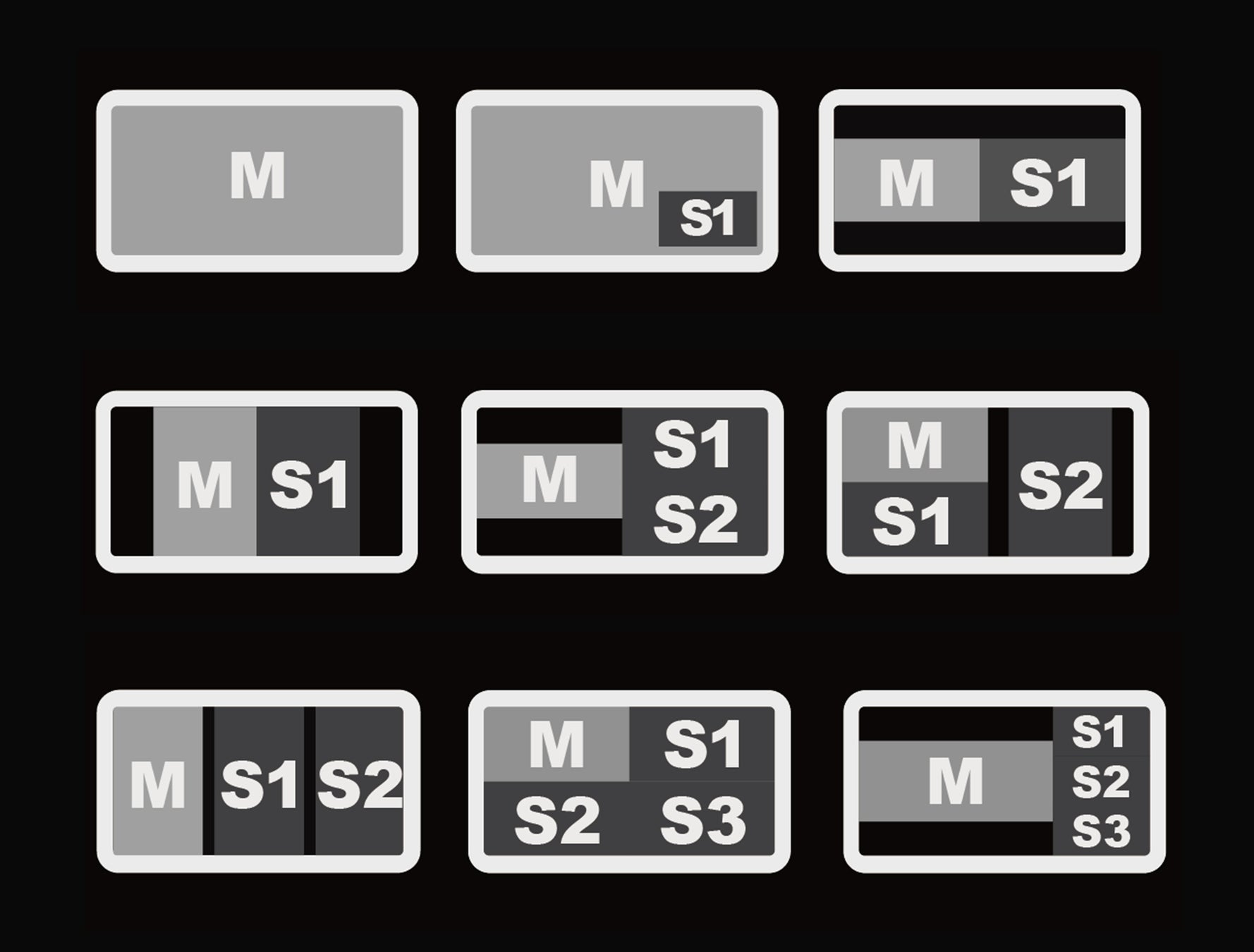予め用意された、1つ、2つ、3つ、4つの複数ソースを組み合わせたレイアウトから、現場に合わせた表示を選んでスムーズに切り替えられます。スマートフォン向けの縦型映像を3つ並べて表示したり、モニターを縦に固定して3つの横位置映像の余白を最小限に抑えて大きく表示したりするなど、多彩なモニタリングを叶えます。