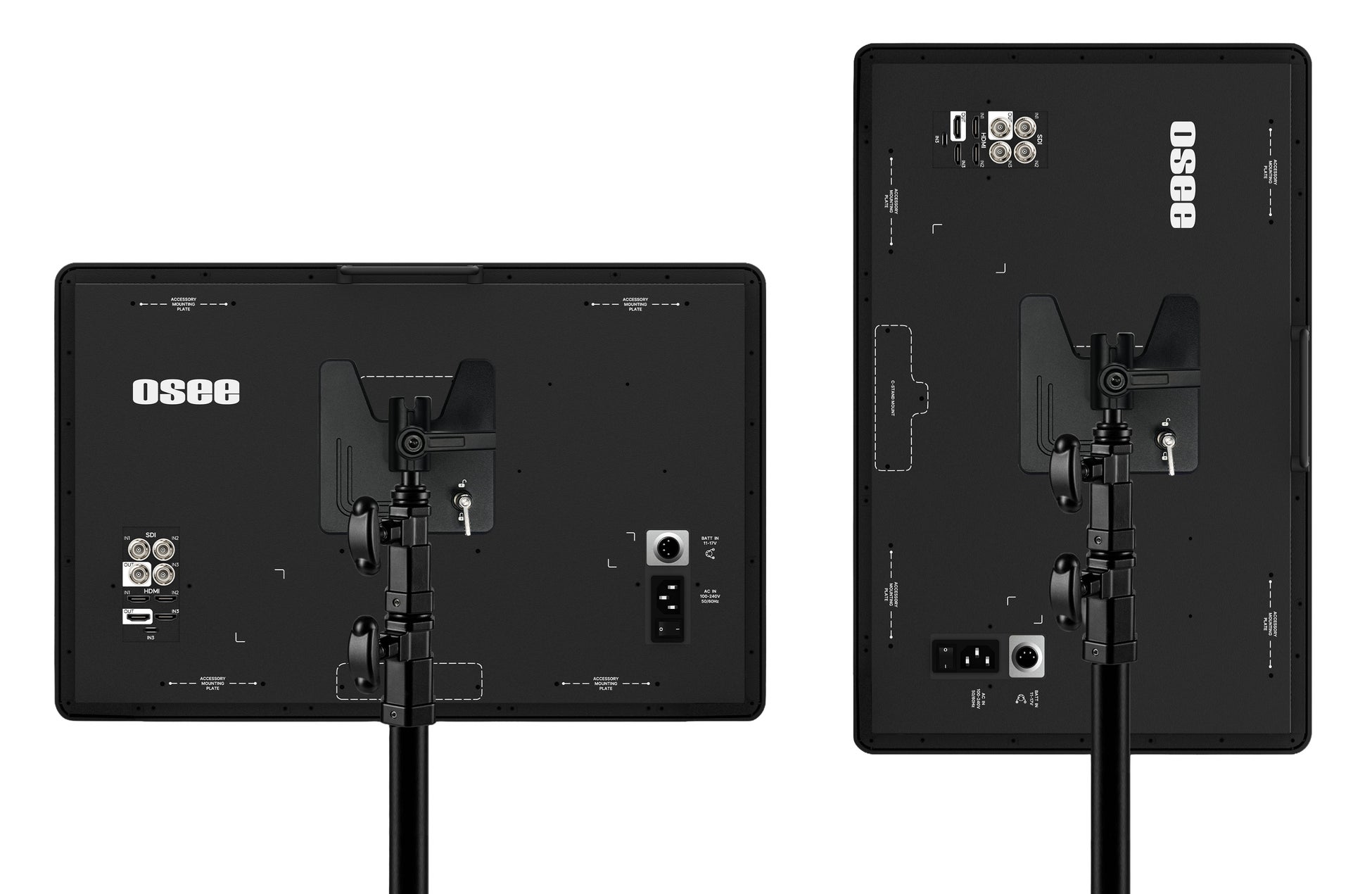 新たにデザインされたモニターマウントにより、横位置だけでなく、ワンタッチでライトスタンドに縦位置での固定ができるようになりました。縦型映像の撮影時はもちろん、3台のカメラ入力を上から下に並べて表示することで、より大きく画面に表示できます。