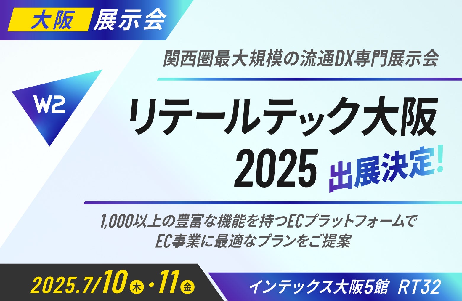EC事業の「成功」にこだわる最先端ECプラットフォームを展開するW2株式会社(本社:東京都中央区、代表取締役CEO:山田 大樹、以下W2)は、「リテールテック大阪2025 (第5回)」に出展することをお知らせします。