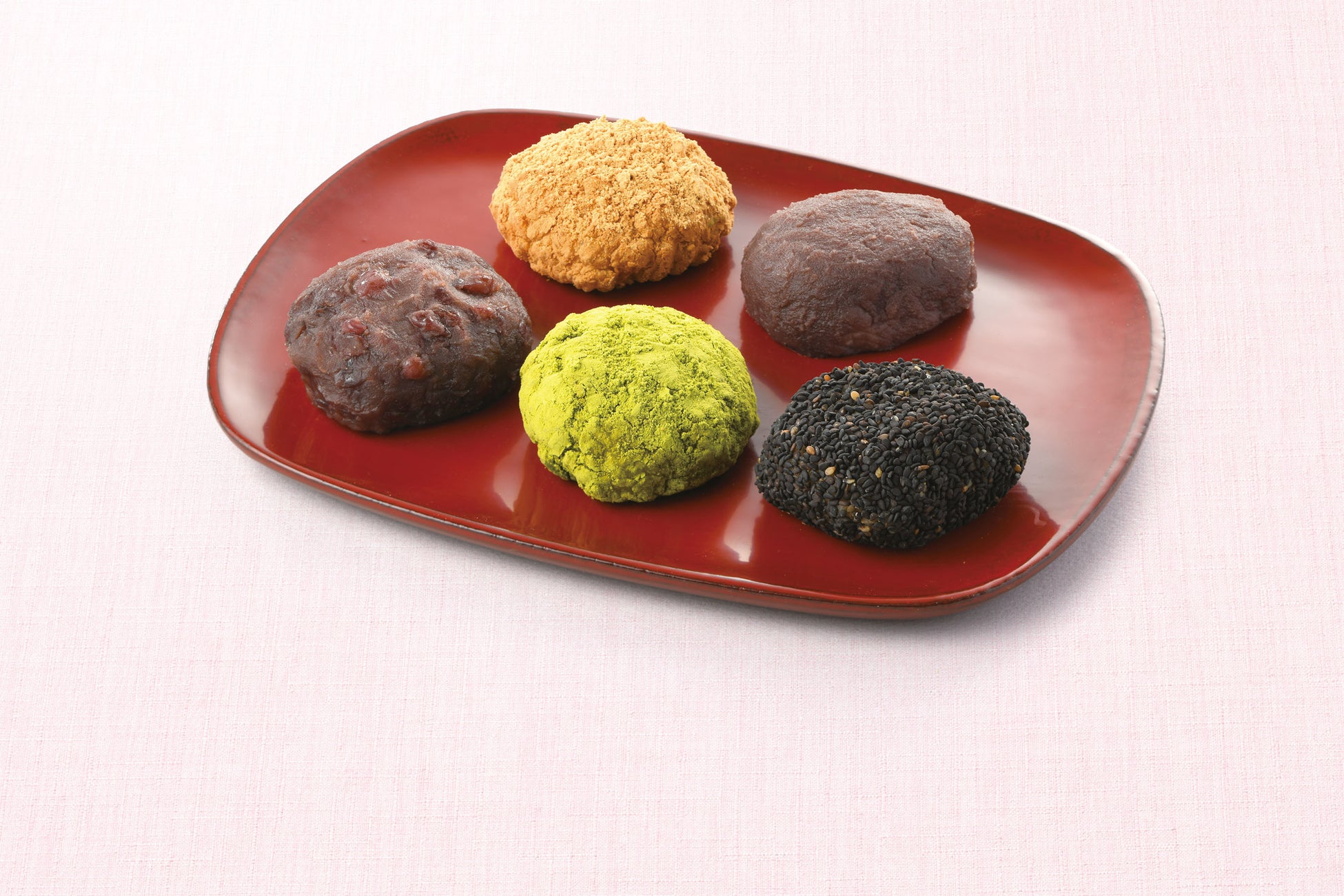 (粒あん・こしあん・胡麻・きなこ・宇治抹茶 各1個)