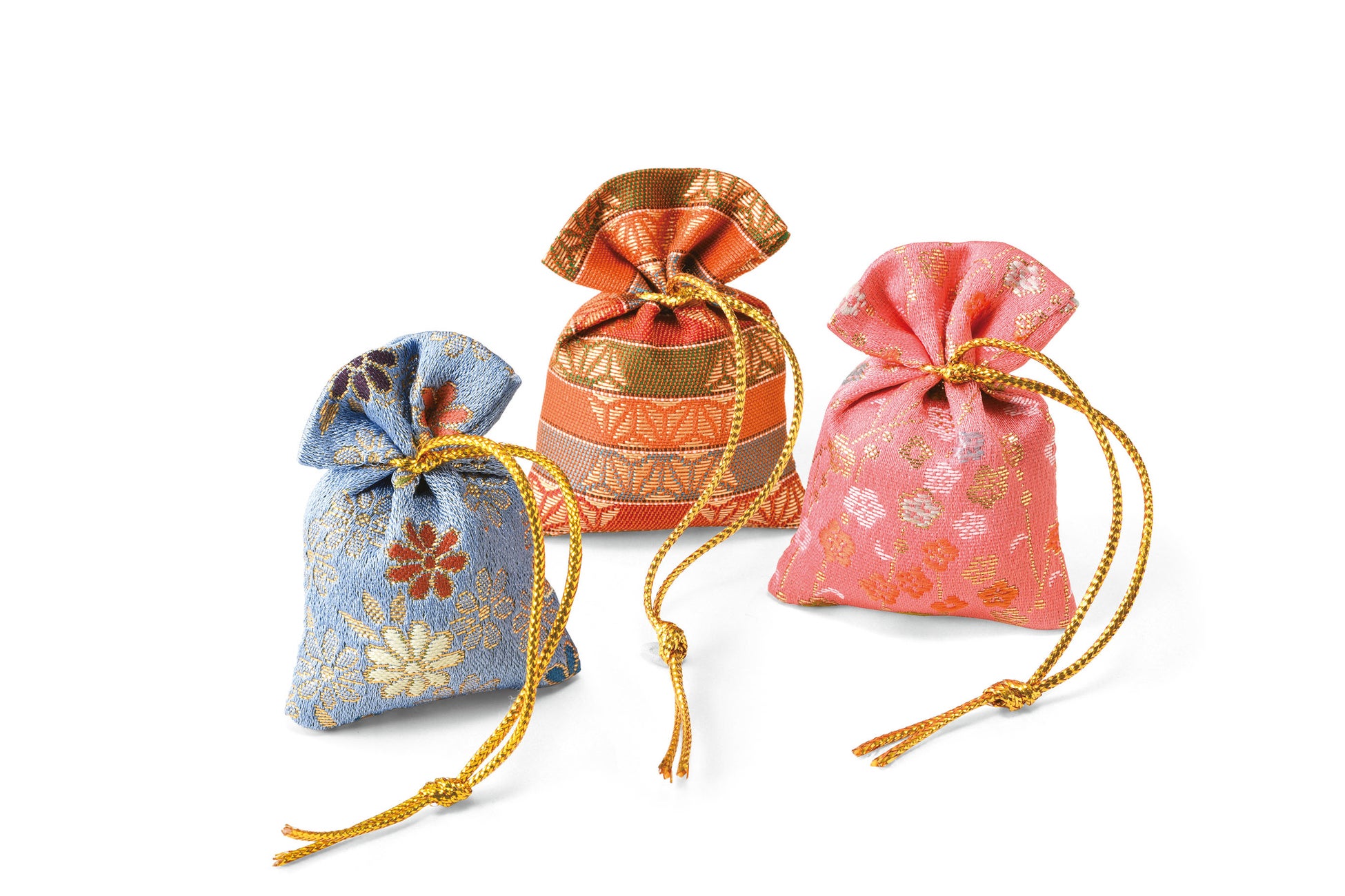創業300余年、京都御所の南側に本店を構えるお香専門店。常温で香る巾着タイプの匂い袋「誰が袖 みやこ」。人とすれ違った瞬間にさりげなく香る匂い袋です。※色・柄は一例です。
