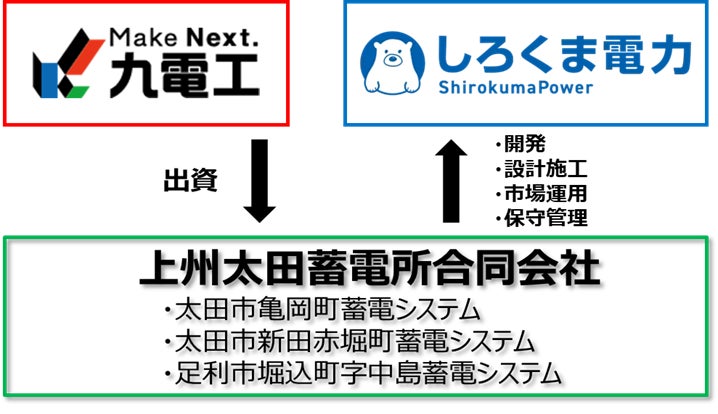 株式会社九電工(福岡県福岡市中央区、代表取締役社長執行役員 石橋 和幸、以下、九電工)が出資する上州太田蓄電所合同会社(東京都新宿区、代表社員 一般社団法人上州みらいエネルギー) と、しろくま電力株式会社(東京都港区、代表取締役 谷本 貫造、以下、しろくま電力)が、群馬県と栃木県で開発を進める上州太田蓄電池事業(以下、本件)において、2025年9月1日より運転開始の運びとなりましたのでお知らせいたします。