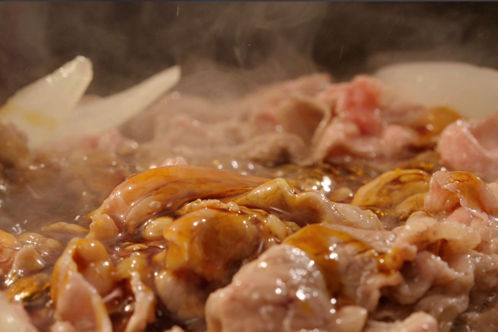 牛肉はご注文ごとに目の前で焼きたてをご提供。すっきりとした甘さが特徴の割り下で味付けし、目の前調理ならではの、じゅわっとした牛肉の焼ける音や香りが食欲をそそります。焼きたてだからこそ味わえる牛肉の脂の旨みや肉感、さらにはたまねぎのシャキッとした食感を、のどごしの良い冷うどんと一緒にお楽しみいただけます。
