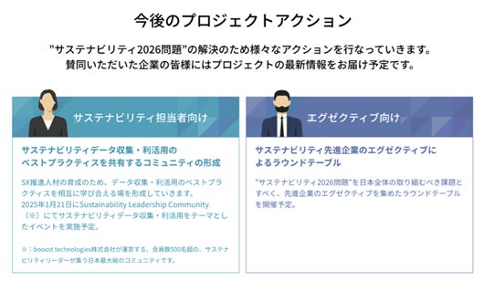 「サステナビリティ2026問題」を乗り越え真のSXを実現するために、本件を社会的な課題として捉え、日本全体で推進していくことが重要です。そのため、当社は本プロジェクトを発足し、日本をSXの先進国とすべくこの取り組みに賛同いただける企業と共に各種アクションを実行してまいります。