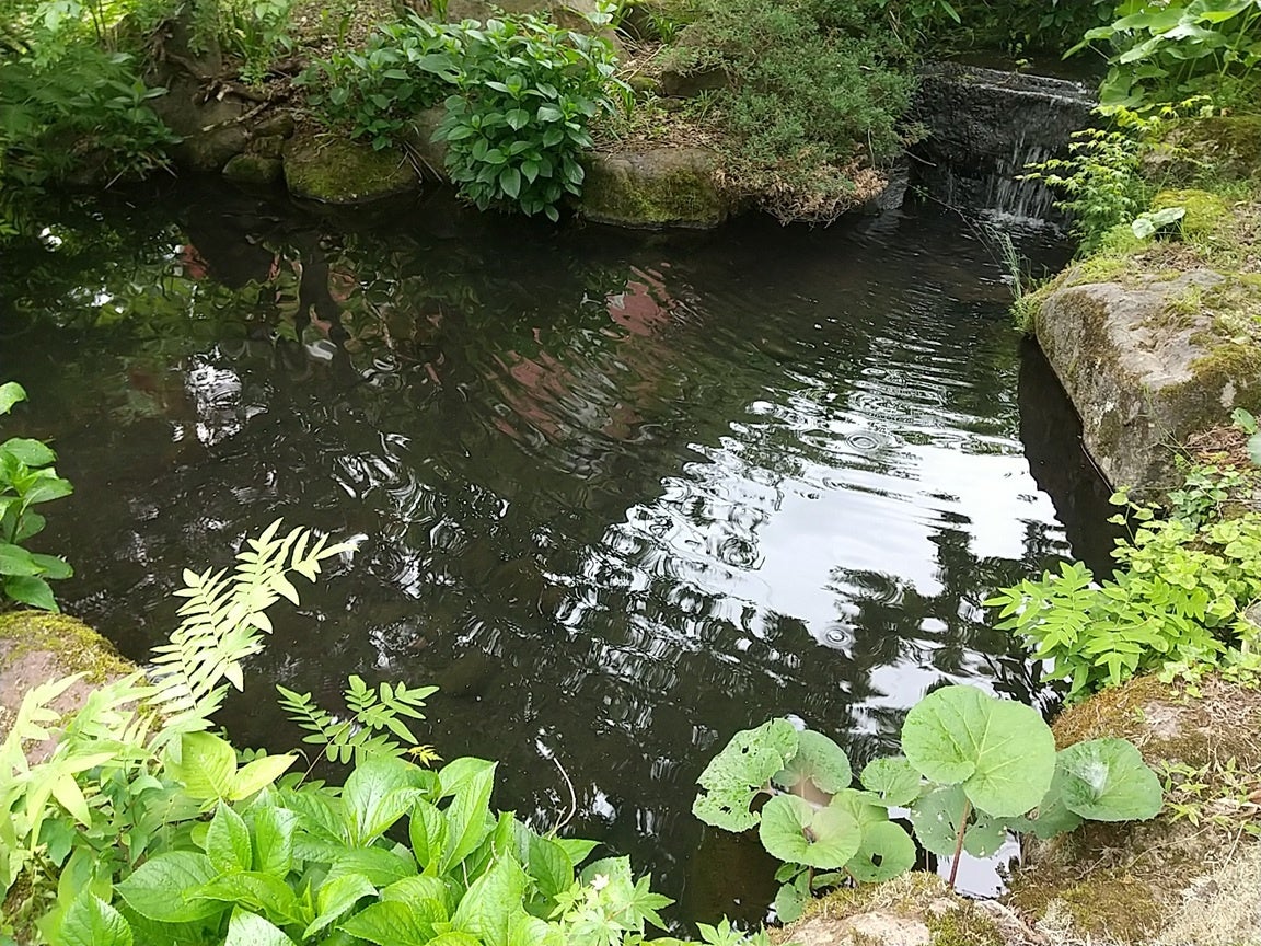 庭園内に昭和の名水百選に選ばれた磐梯西山麓湧水群の一つである龍ケ沢湧水等から引いた水や花川から引いた池があり、人工の庭園でありながら町を代表する生き物モリアオガエルや、本来は湧水を起源とする緩やかな流れの小川などに生息するホトケドジョウ、きれいな水の指標生物となっているサワガニなど、「名水の町ばんだい」のきれいな水に育まれた豊かな生物多様性が維持されているエリアです。