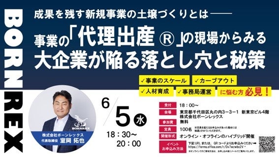 【6/5(水)18:30~開催】大企業の力で、世界を牽引する日本をもう一度。“新規事業立ち上げの劇薬”で知られる株式会社ボーンレックスの代表室岡による、新規事業お悩み解決相談会開催決定!