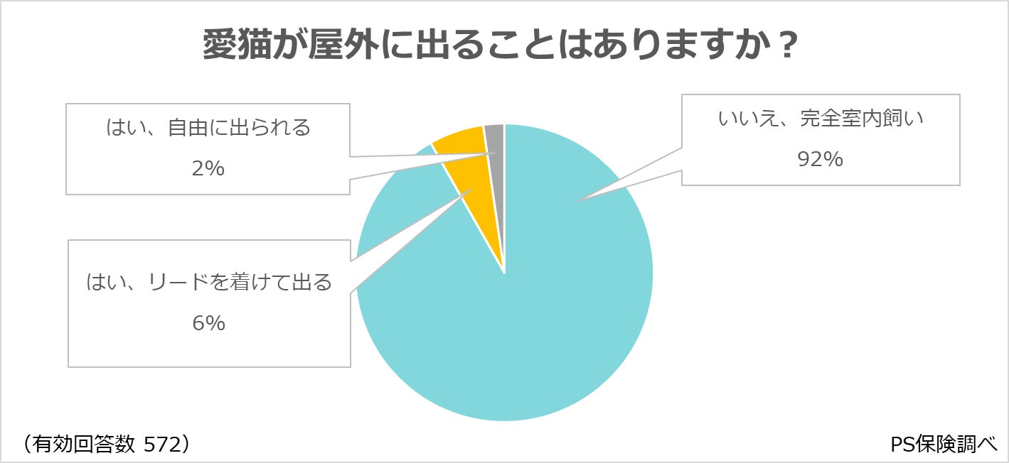 ・飼い主の92%が愛猫を完全室内飼い。屋外に出すのはごく少数派。