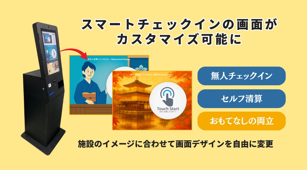 こうした声に応えるため、施設ごとに異なるブランドイメージや内装、接客スタイルにあわせたチェックイン画面をカスタマイズできる新機能を開発。非対面運用においても、施設独自の“おもてなし”が伝わるUIデザインを実現します。