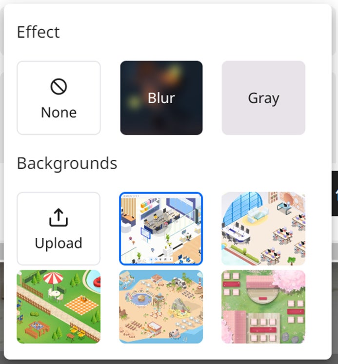 ▲個人設定の「エフェクトを選択」から、バーチャル背景を登録できる
