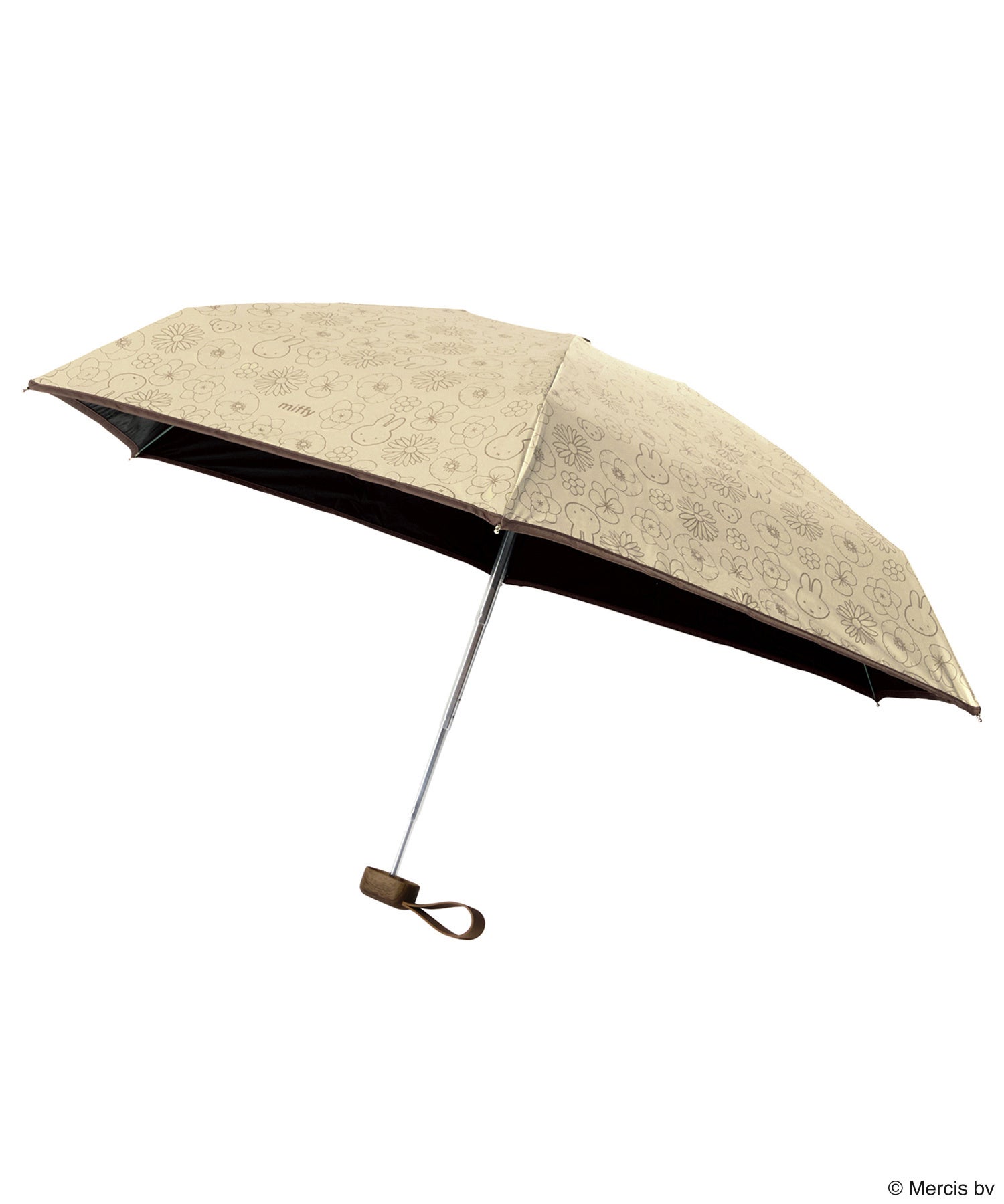傘全体に広がるお花模様が印象的な総柄デザインの日傘。くすみカラーを意識した優しい色味がほっこりさせてくれます。お花模様の中にミッフィーが隠れているので探してみて。