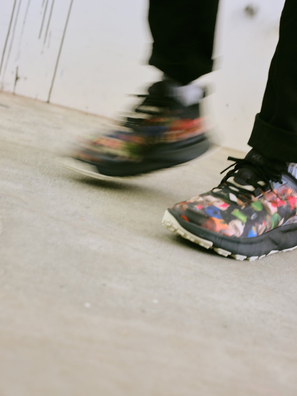 デザインは、メンバーの⼀⼈であるRYUJI KAMIYAMA⽒のスプレー⽸のキャップを集めたアート作品を、⼤胆にアッパーへプリントを施した秀逸な⼀⾜に仕上がっています。