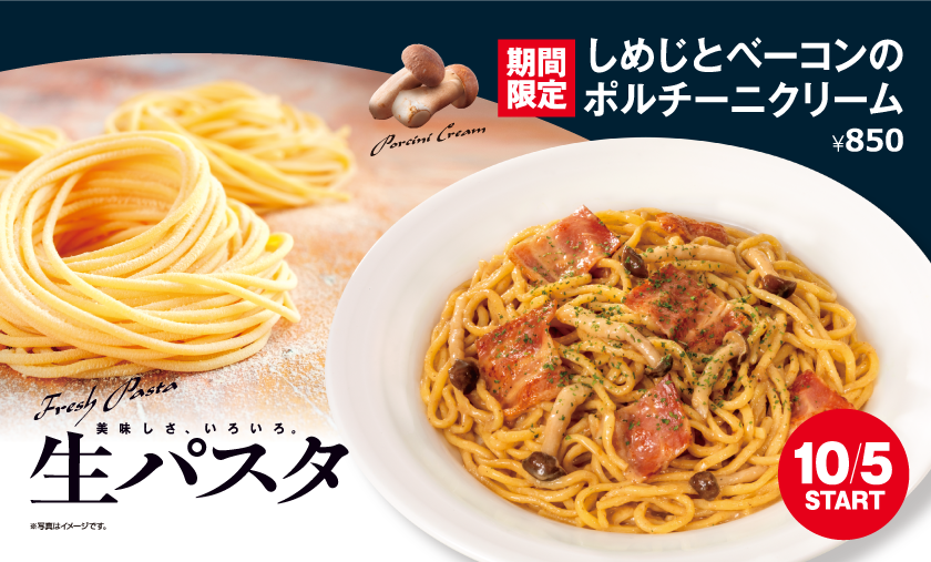 秋の味覚をご賞味あれ ポルチーニ茸を使用した濃厚ソース 長野県産 しめじとベーコンのポルチーニクリーム新発売!10/5(木) 全店で販売開始