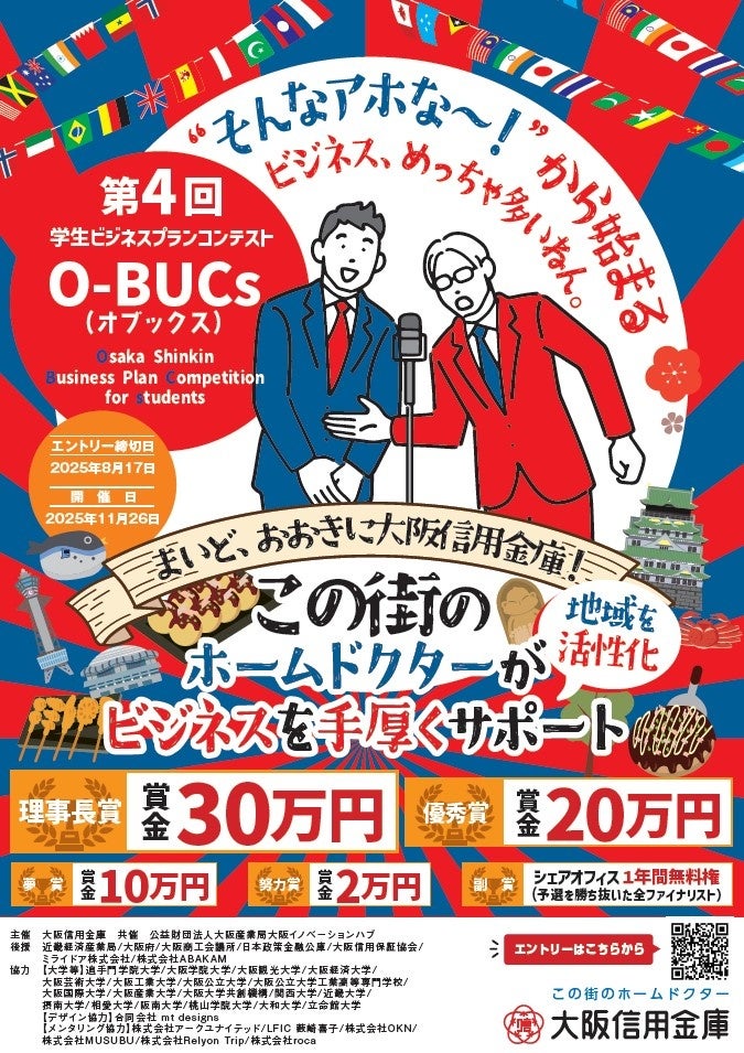 大阪信用金庫(理事長 髙井嘉津義)が主催する「第4回学生ビジコン O-BUCs(オブックス)」の開催が決定し、ビジネスプランの募集を開始しました。