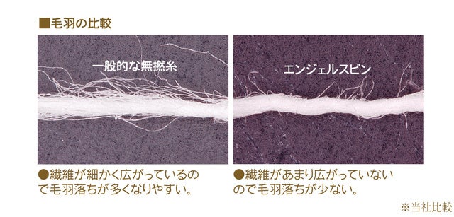一般の無撚糸と比べ、撚り方にも工し、毛羽が出にくい糸にグレードを高め、風合いにもこだわりました。