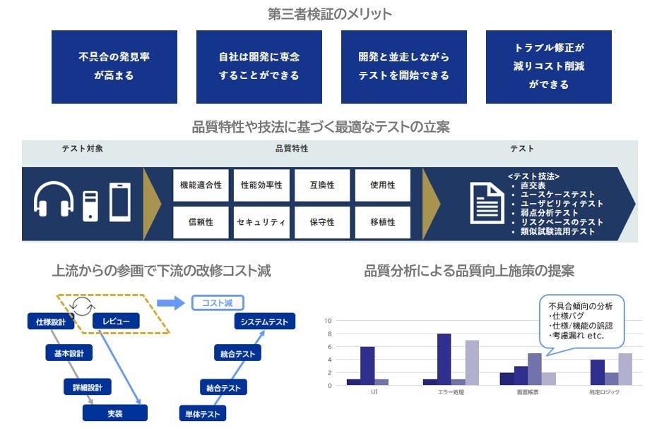 富士ソフトのソフトウェア・製品検証サービス。50年以上にわたり日本の産業を支えてきたノウハウを基に、JSTQB(Japan Software Testing Qualifications Board)認定技術者を中心としたメンバーが、開発者では気付かない不具合や欠陥を検出します。