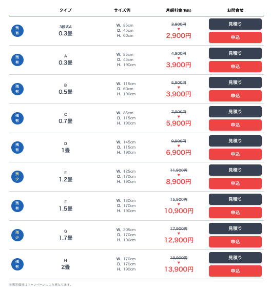 荷物以上に大きな部屋を借りてしまうことや、狭すぎて荷物が入らなかったなんていうトラブルを回避できます。