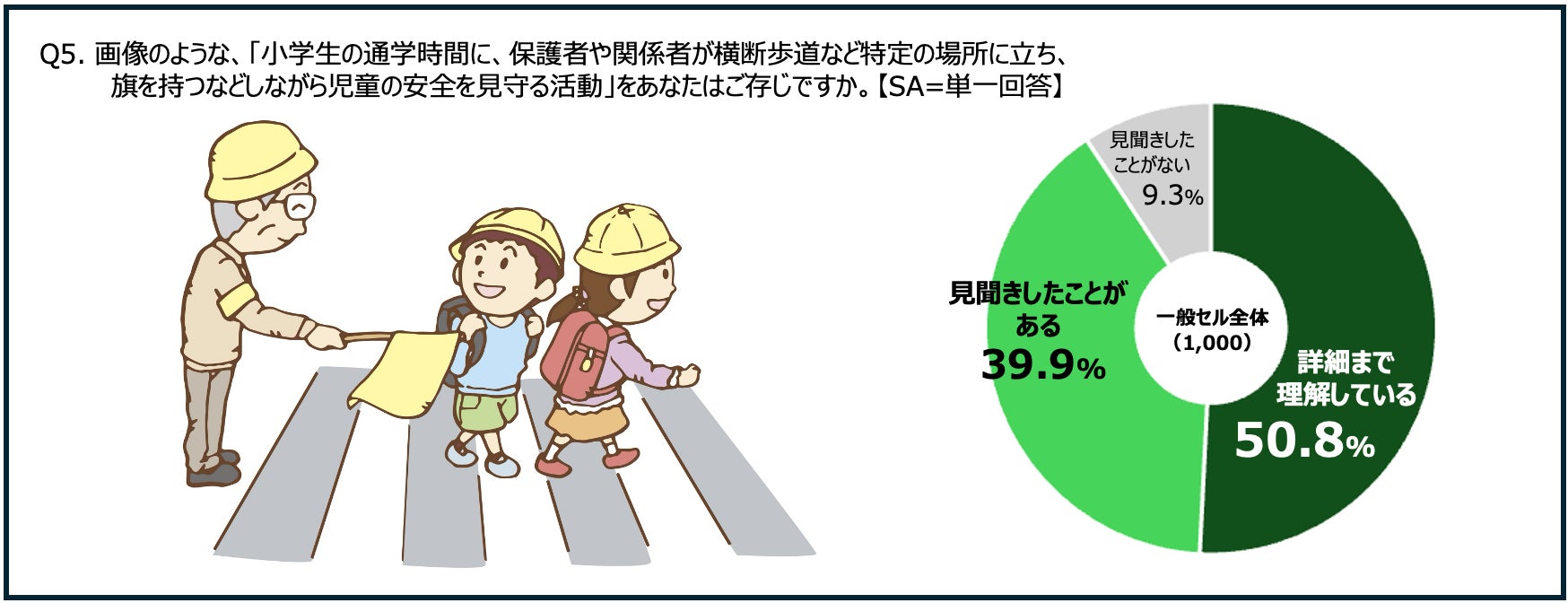 まず、 「こども見守り活動」に関する認知率は高く約9割となり、「詳細まで理解している」と答えた人は50.8%。「見聞きしたことがある程度」が39.9%、「見聞きしたことがない」が9.3%という回答となりました。