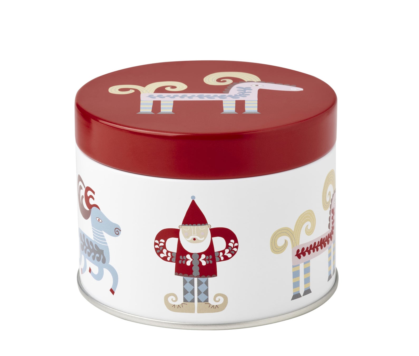 この缶はエルフとカラフルな動物でデコレーションされています。クリスマスのクッキーやキャンディーの容器としても、キッチンカウンターに置いたり、おいしいものを詰めてプレゼントするのにもぴったりなアイテムです。