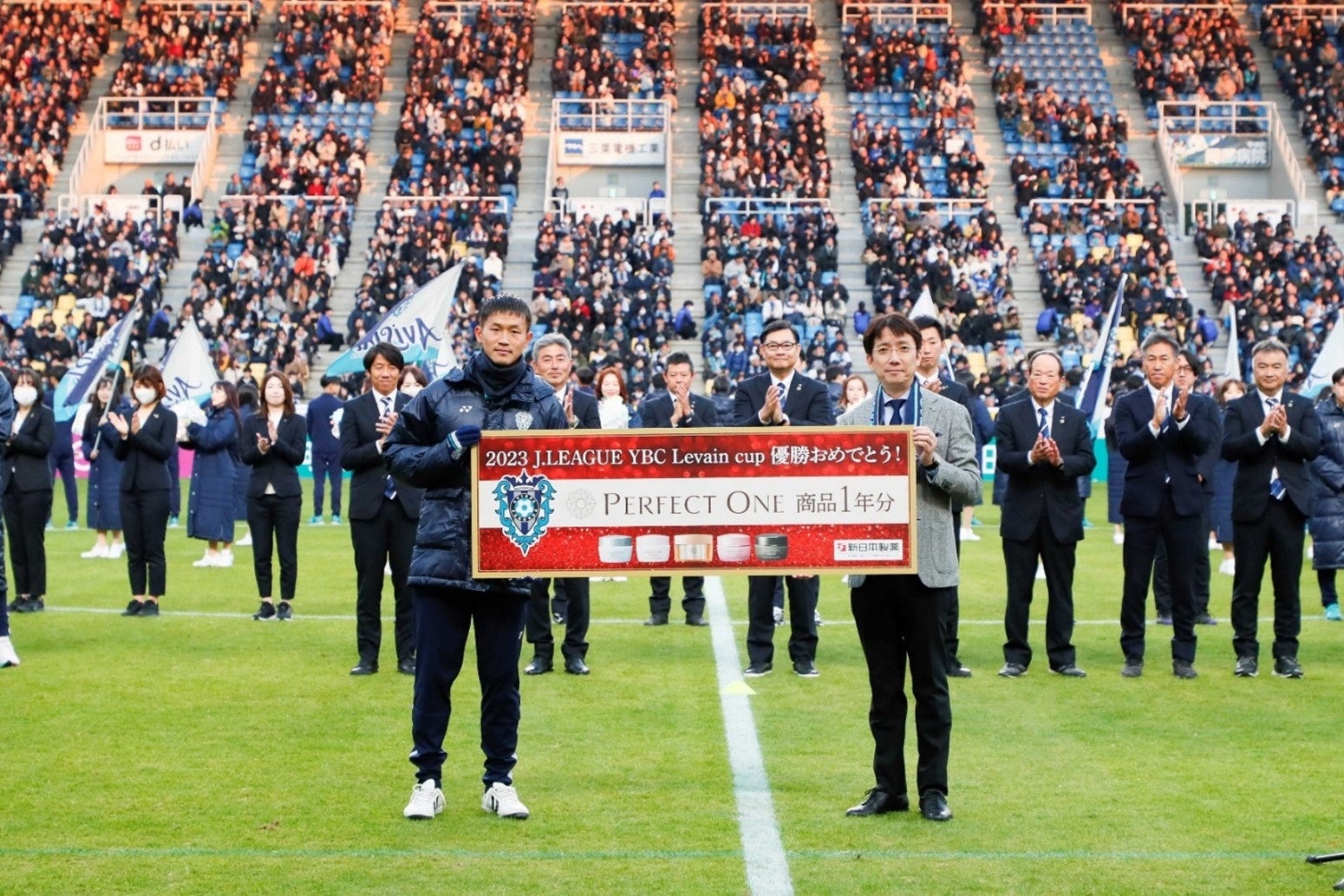 2023JリーグYBCルヴァンカップでの優勝を記念して、商品1年分を贈呈いただきました。