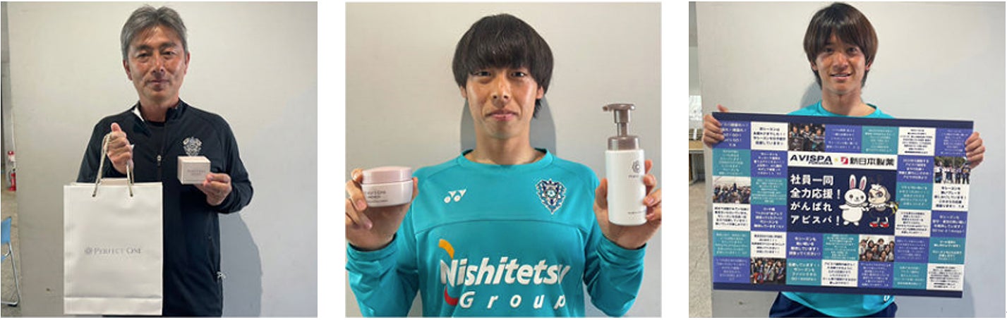 選手も日頃から愛用している「パーフェクトワン」の商品1年分を選手・監督・コーチ・スタッフ全員に贈呈いただきました。