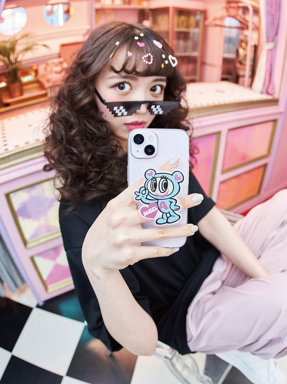 雑誌「ニコ☆プチ」「ニコラ」を経て現在「Popteen(ポップティーン)」にて活躍中のモデル。デイリーアイテムと平成女児のカルチャー感をミックスしたヴィジュアルを、エンジェルブルーのリバイバル世代としてリアルに表現しています。