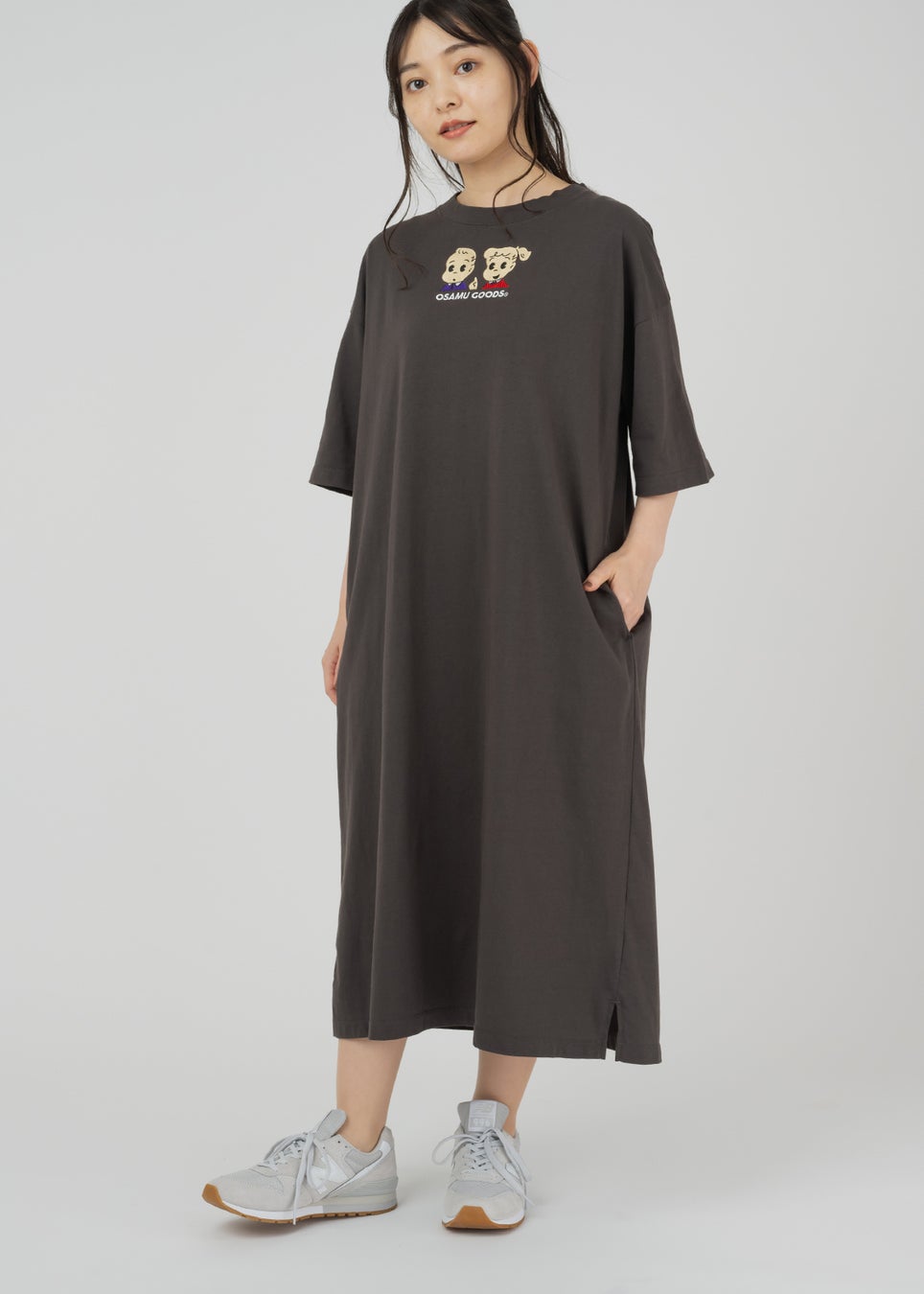 メンズライクな凹凸のある空紡糸を使用したカットソーワンピース。サイドシームポケット付き。