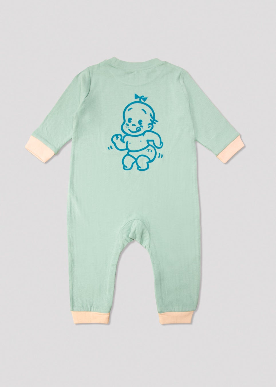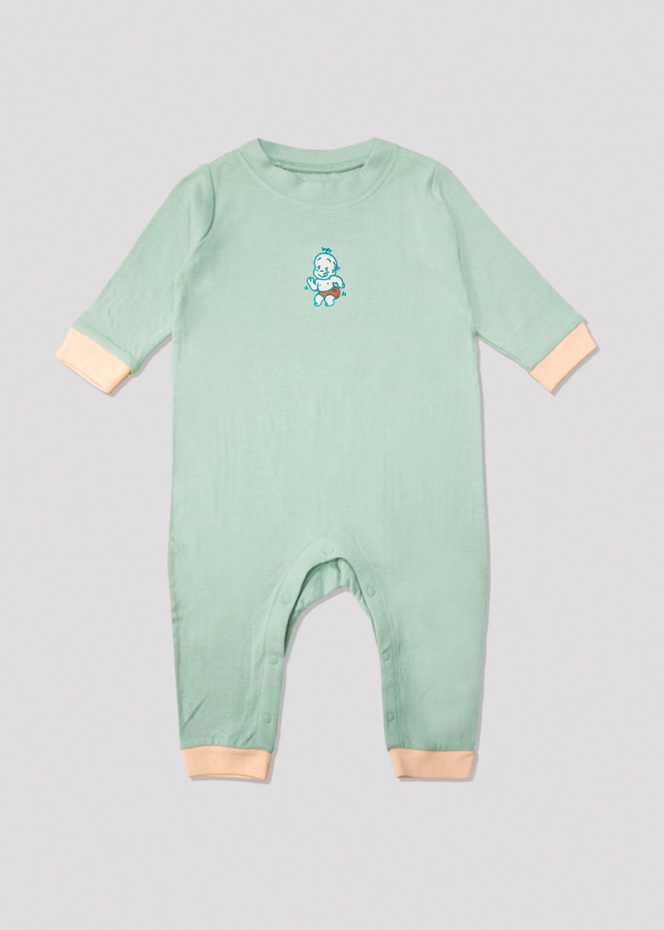 キュートなベビーを胸元にワンポイント刺繍。バックには同じデザインが大きくプリントされています。