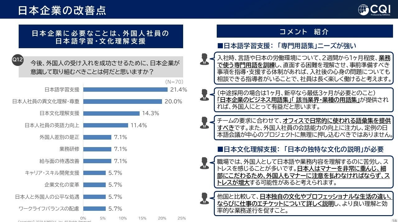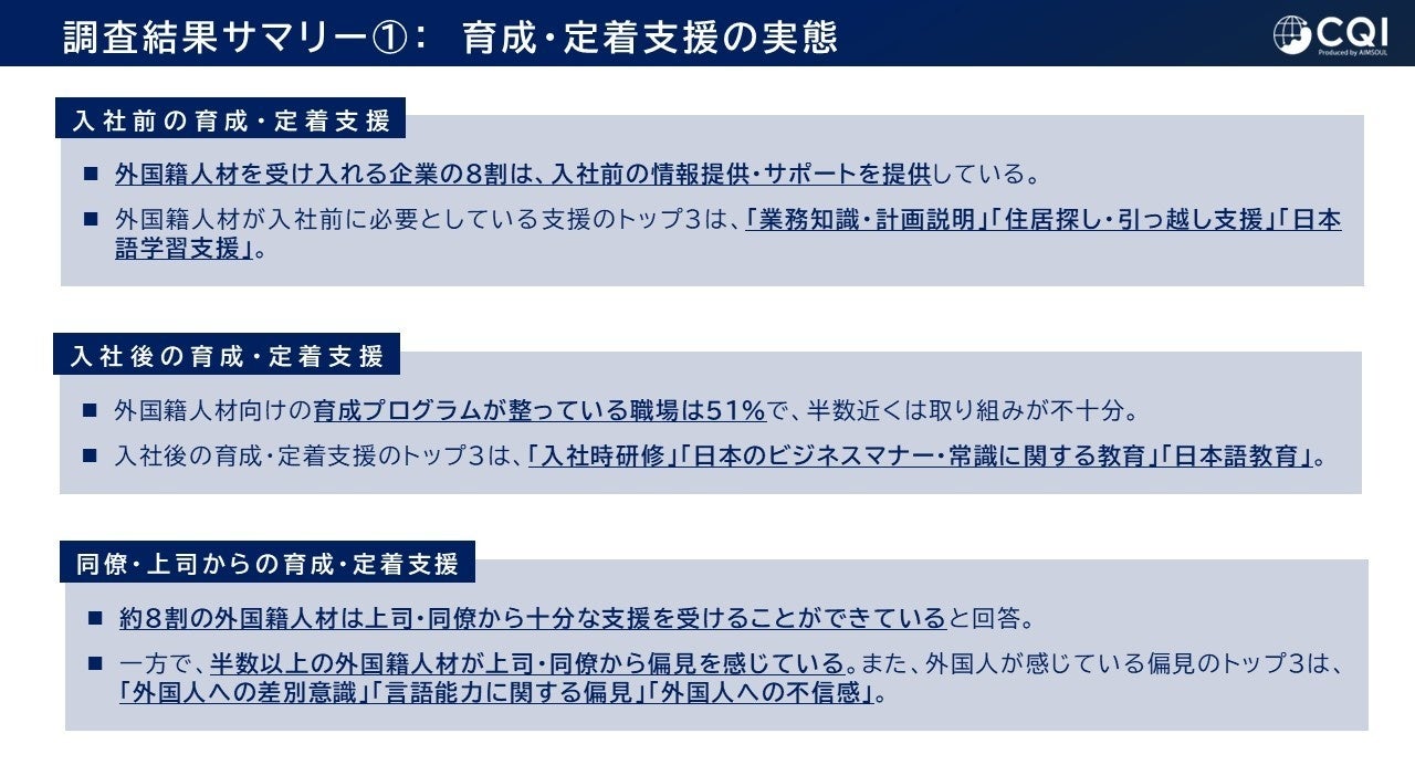 【国際比較調査】外国籍人材向け育成が、半数の職場において不十分であることが明らかに。エイムソウル、『日本企業における外国籍人材の育成・定着支援に関する調査』を発表