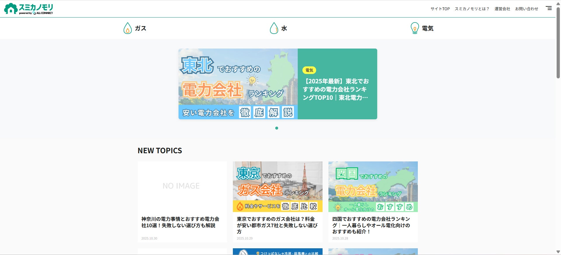 通信インフラ事業と地域振興事業を手掛ける株式会社ALL CONNECT(代表取締役社長:岩井 宏太/本社:福井県福井市)は、電気・ガス・水・通信などの生活インフラに関する情報を発信する新メディア『スミカノモリ』を公開しました。