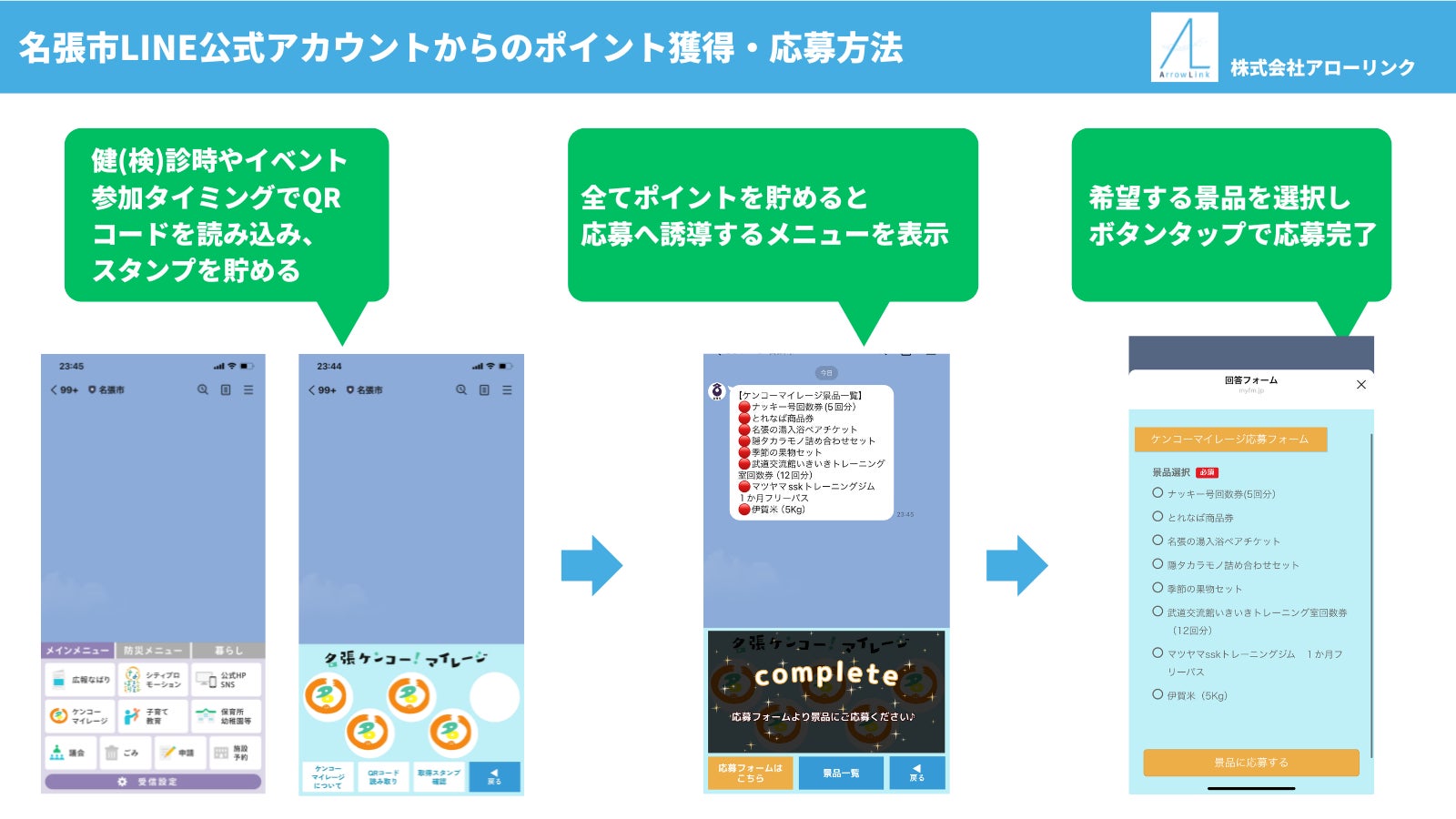 今まで、紙台紙のみで実施していた名張ケンコー!マイレージ事業ですが、公式LINEでもポイントが貯められるようにリニューアルしました。名張市LINE公式アカウントは、防災情報や観光情報など市の情報を得ることができます。様々な入口から、幅広い世代が健康づくり事業につながるようにLINEを活用していきたいと思います。