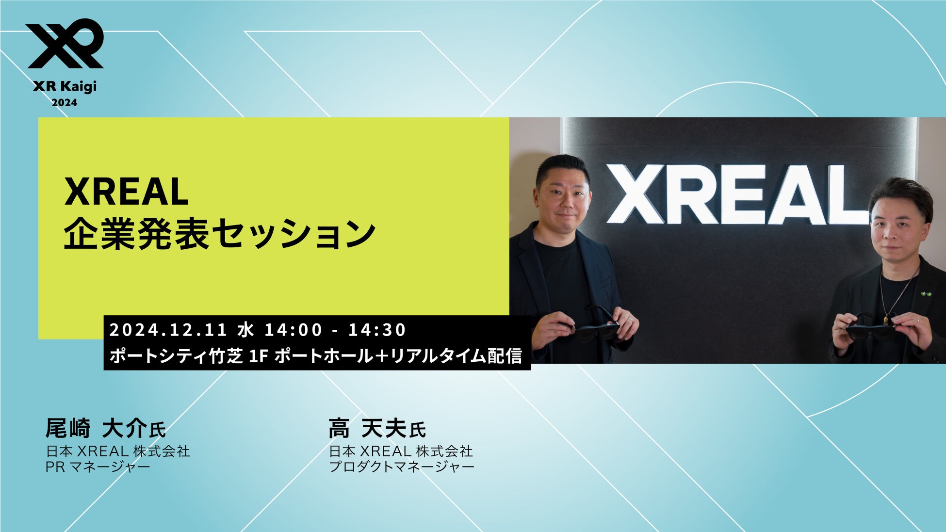 また、2024年12月11日(水)14:00~ 開催される「企業発表セッション」では、日本Xrealの尾崎 大介(PRマネージャー)と 高 天夫(プロダクトマネージャー)がXREALの未来について語るステージをお届けします。