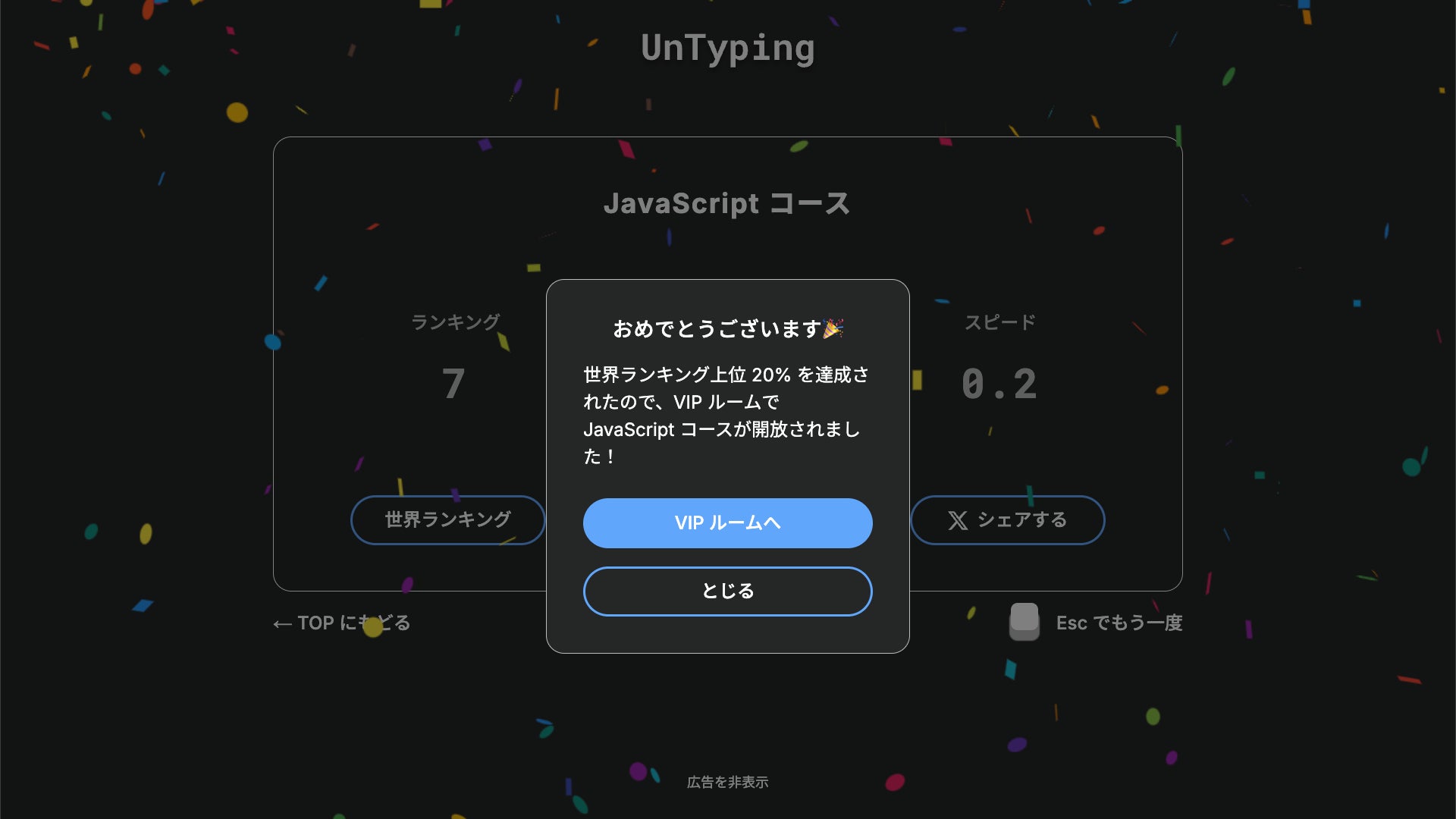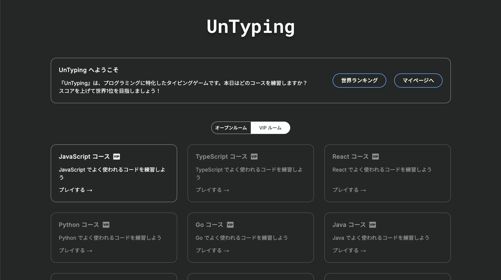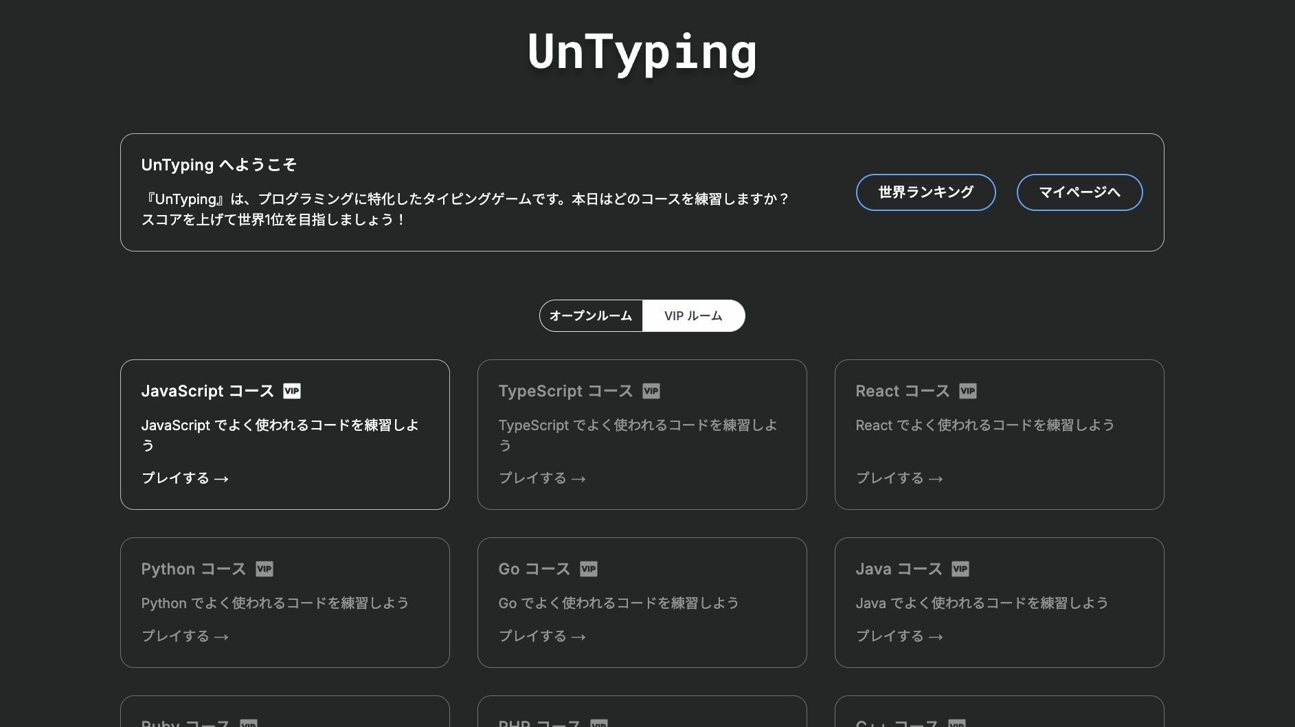 プログラミングタイピングゲーム「UnTyping」が上級者専用の「VIP ルーム」をリリース!