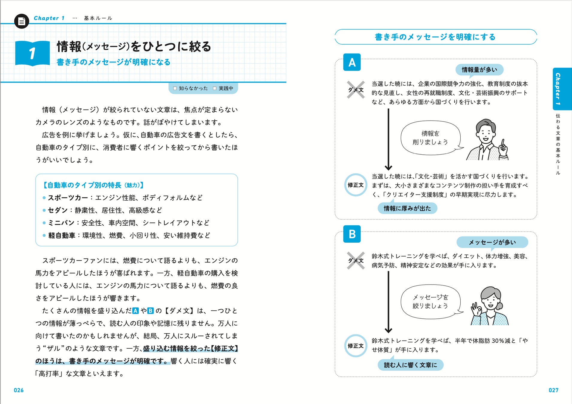 「ダメ文」と「修正文」の比較で、どう文章を変えたら伝わりやすくなるのかが、すぐにわかるようにまとめました。