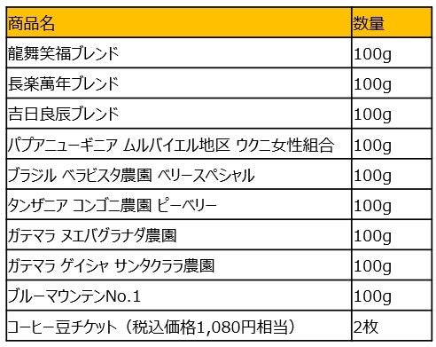 『2024年珈琲福袋』の店頭予約を11月15日に開始 ~福袋限定「龍舞笑福ブレンド」をはじめ、人気のコーヒーを詰め合わせたセットをご用意~