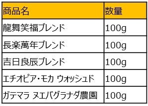 ・3,240円セット:コーヒー各種100g×5種類 計500g