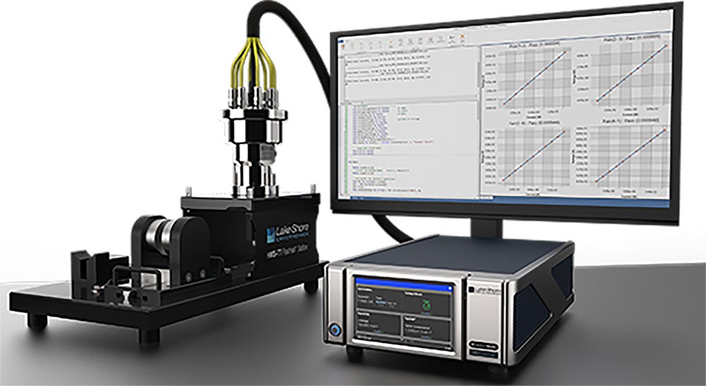 「M91 FastHall Station」は、Lake Shore社の特許技術を利用し、半導体の材料評価の一つである比抵抗/ホール効果測定を、高速・高精度で実施できるシステムです。このたび幅広い温度特性の評価範囲に対応できるようになったことで、生産工程においてより効率的な品質管理に貢献できるようになりました。