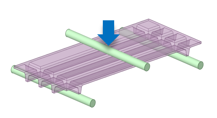 金型内におけるガス流通の制御と製品設計、金型設計のシミュレーションにより、狙った箇所のみを部分発泡させます。成形品のヒケやソリが改善され、外観は発泡させていない樹脂同等になります。例えば基材厚みを1mmと薄くした場合、基材厚み3mmの平板に対して、質量は40%削減されますが、5kgの荷重では変形量が低減し、シミュレーション同等の効果が得られることを確認しました。