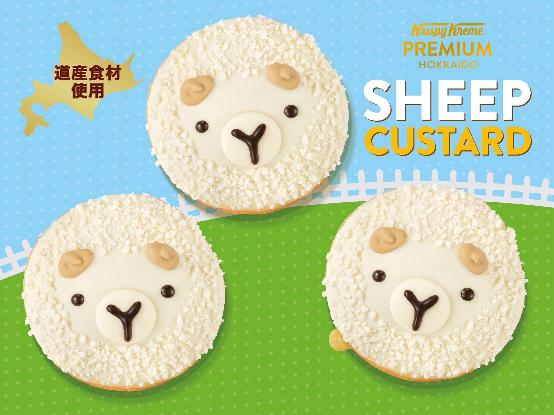 北海道限定『クリスピー・クリーム・プレミアム 北海道』シリーズから、モコモコでキュートな“ひつじ”がドーナツで登場!『ひつじ カスタード』