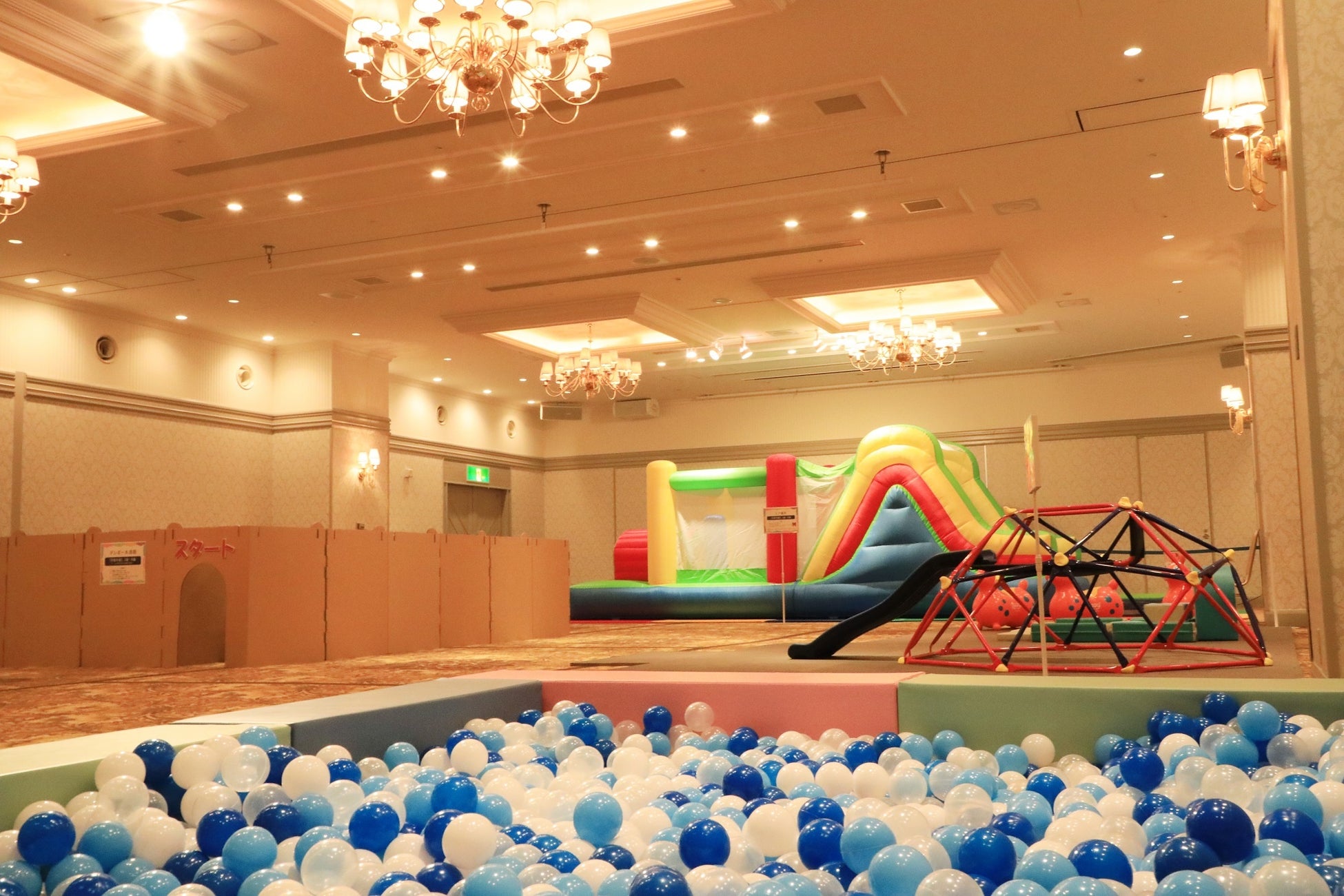 エア遊具やボールプールなどのお子様向けの遊具を備えたプレイルームで思いっきり遊ぶことができます。入場無料で朝8時から夜9時まで開いておりますので、ホテル滞在中にお気軽にご利用ください。