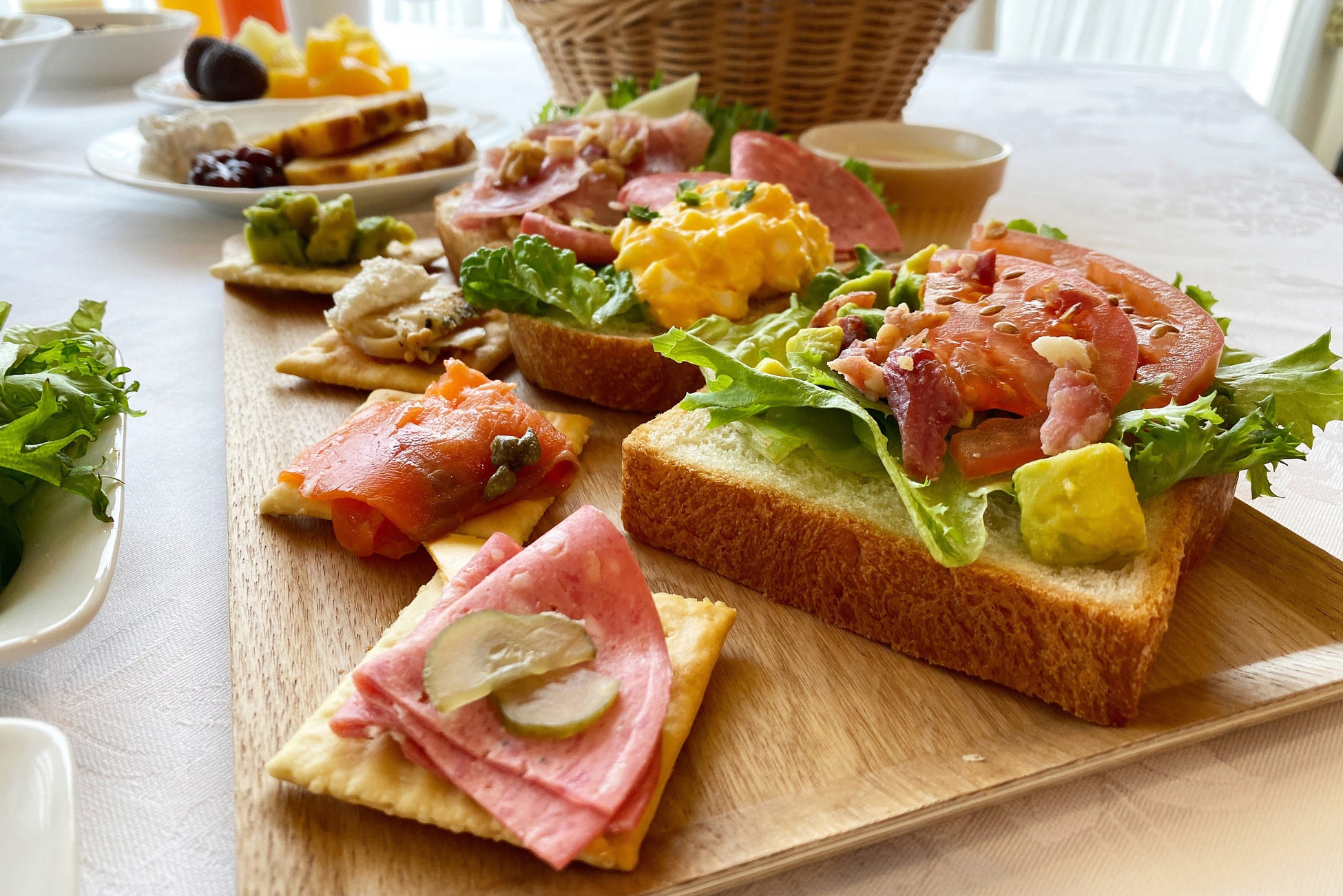 朝食はレストラン『ロジェール』にてブッフェスタイルでご用意。飛騨産の食材を使用したアソシアならではのメニューに加えて、8種類の自家製パンとトッピングを使ったオープンサンドを作るのも人気です。
