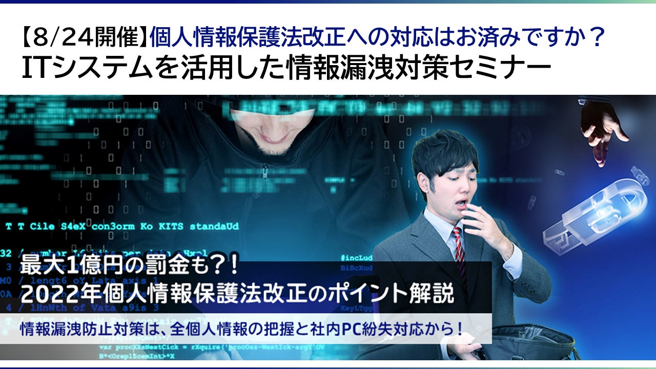 NECは、2022年8月24日に中堅・中小企業の総務・情報システム担当者向けに「個人情報保護法改正への対応はお済みですか?ITシステムを活用した情報漏洩対策セミナー」を開催します。