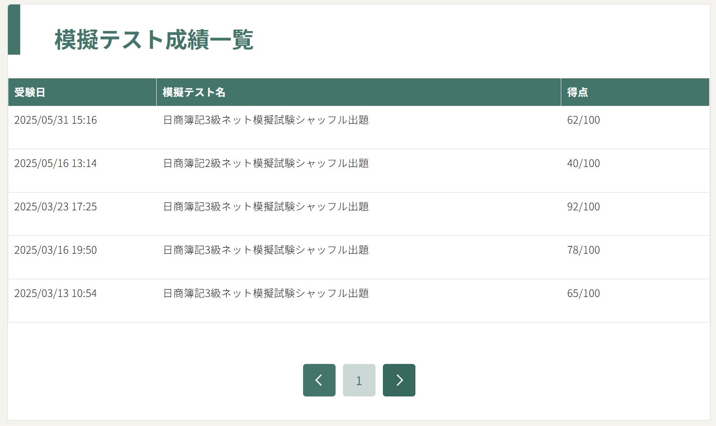 CPAラーニングで実施される模擬試験の結果を、ユーザー別に確認可能。理解度の把握や評価、フォローアップに活用できます。