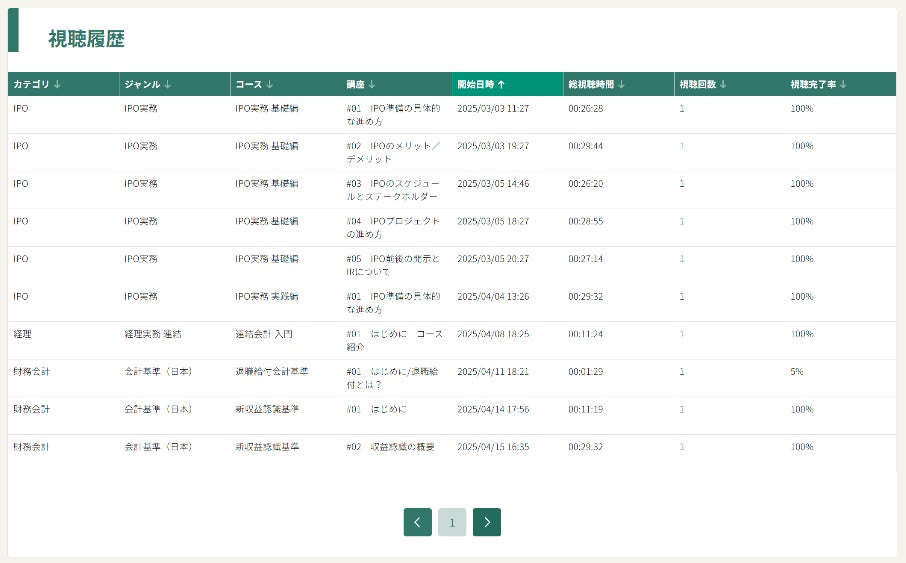CPAラーニングの全ての講義の学習状況を把握することができます。そのため、簿記3級から1級、会計基準まで幅広いジャンルの講座を研修にお使いいただけます。