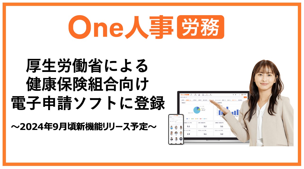 One人事株式会社(本社:東京都品川区、代表取締役社長:唐沢雄三郎)が提供する人事DXシステム「One人事」は、厚生労働省による健康保険組合向け電子申請ソフトに登録されたことをお知らせいたします。