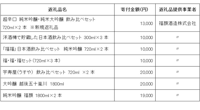 新潟県三条市(市長:滝沢 亮)は父の日に向けて、三条市内唯一の酒蔵「福顔酒造株式会社」(代表取締役:小林 章 以下、福顔酒造)の新規返礼品を採用し、寄付受付を開始しました。